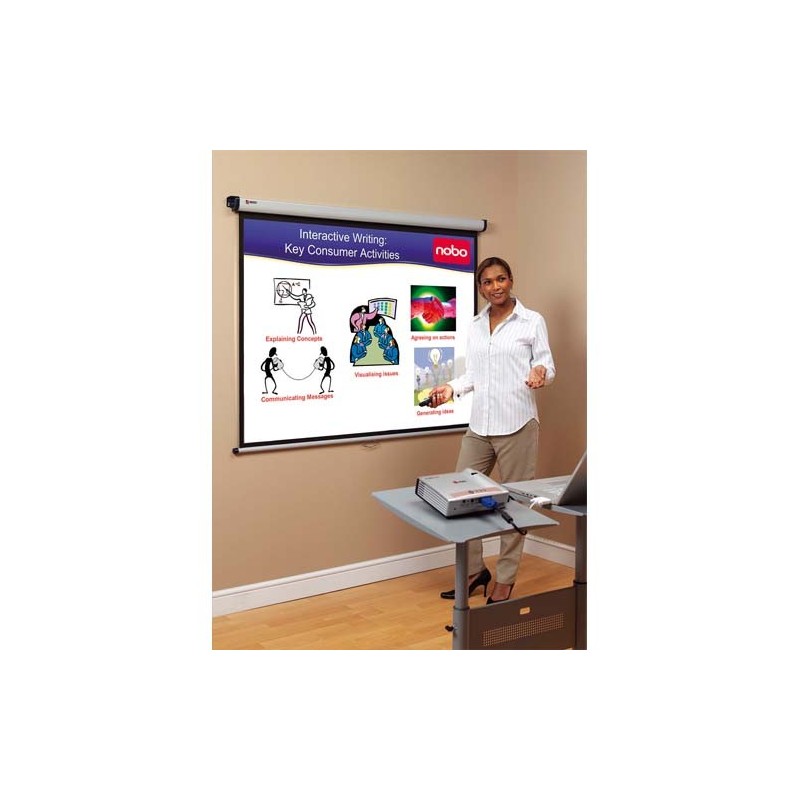 Ecrans professionnels surface blanc mat et dos de la toile Noire pour éviter toute transparence et déperditions lumineuses. Carter de protection en tôle d'acier gris clair.