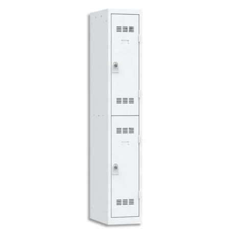 Construction monobloc soudée en tôle d'acier 1er choix épaisseur 07 mm. Socle fond plat. Perforations à l'arrière du fond pour permettre l'évacuation des poussières et liquides. Portes en métal avec porte étiquette. Fermeture par moraillon débraillable porte-cadenas (cadenas non fourni). Anti effraction par rotation. Niveau de résistance à l'effraction : classe C selon la norme NF D65-760. Finition peinture en poudre époxy polyester. Dimensions d'une colonne (l x h x p) 30 x 180 x 50 cm.