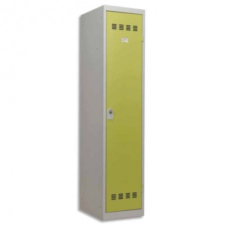 Construction monobloc soudée en tôle d'acier 1er choix épaisseur 07 mm. Socle fond plat. Perforations à l'arrière du fond pour permettre l'évacuation des poussières et liquides. Fermeture par moraillon débraillable porte-cadenas (cadenas non fourni). Anti effraction par rotation. Niveau de résistance à l'effraction : classe C selon la norme NF D65-760. Etagère soudée avec tube support cintre diamètre 16 mm. Tablette haute libérant un espace supérieur H.30 cm. Hauteur totale du vestiaire 180 cm.