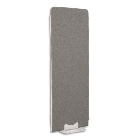 Cloisons de séparation textile largeur 60 ou 80 cm. Structure en panneau de particules 25 mm. Revêtement tissu 100 % polyester et mousse 3 mm. Socle en acier épaisseur 6 mm laqué blanc RAL 9003. Liaison par fermeture zippée blanche pour relier les cloisons entre-elles. Hauteur 170 cm profondeur 3 cm. 5 coloris.