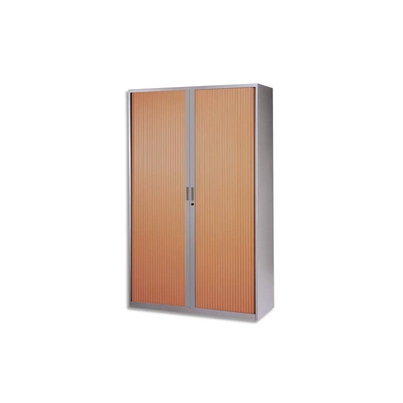 MT INTERNATIONAL Armoire haute métal monobloc Corps silver/Rideaux merisier 4 tablet. - Dim. 120x198x43cm