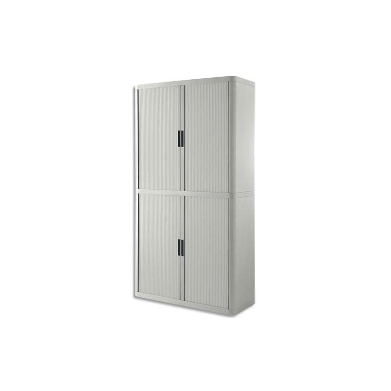 Rideau polypropylène lamelles 15 mm s'escamotant totalement dans les parois pour un accès et une visibilité totale du contenu de l'armoire. Poignées encastrées avec cache escamotable. Serrure à double sortie livrée avec un jeu de 2 clés numérotées.