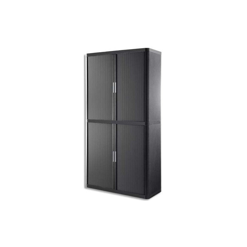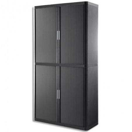 Rideau polypropylène lamelles 15 mm s'escamotant totalement dans les parois pour un accès et une visibilité totale du contenu de l'armoire. Poignées encastrées avec cache escamotable. Serrure à double sortie livrée avec un jeu de 2 clés numérotées.