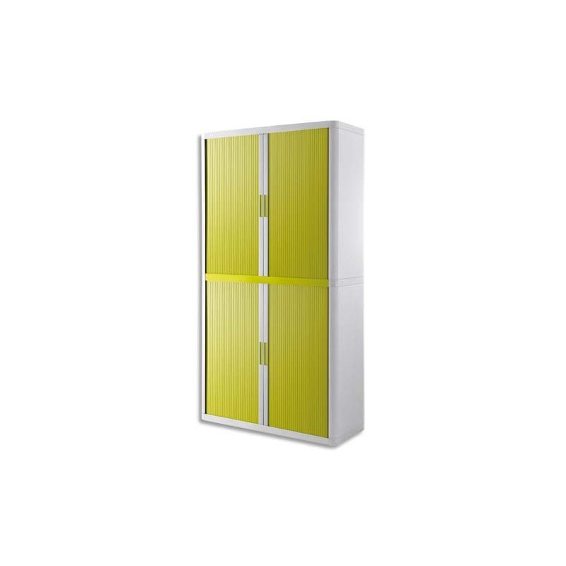 Rideau polypropylène lamelles 15 mm s'escamotant totalement dans les parois pour un accès et une visibilité totale du contenu de l'armoire. Poignées encastrées avec cache escamotable. Serrure à double sortie livrée avec un jeu de 2 clés numérotées.