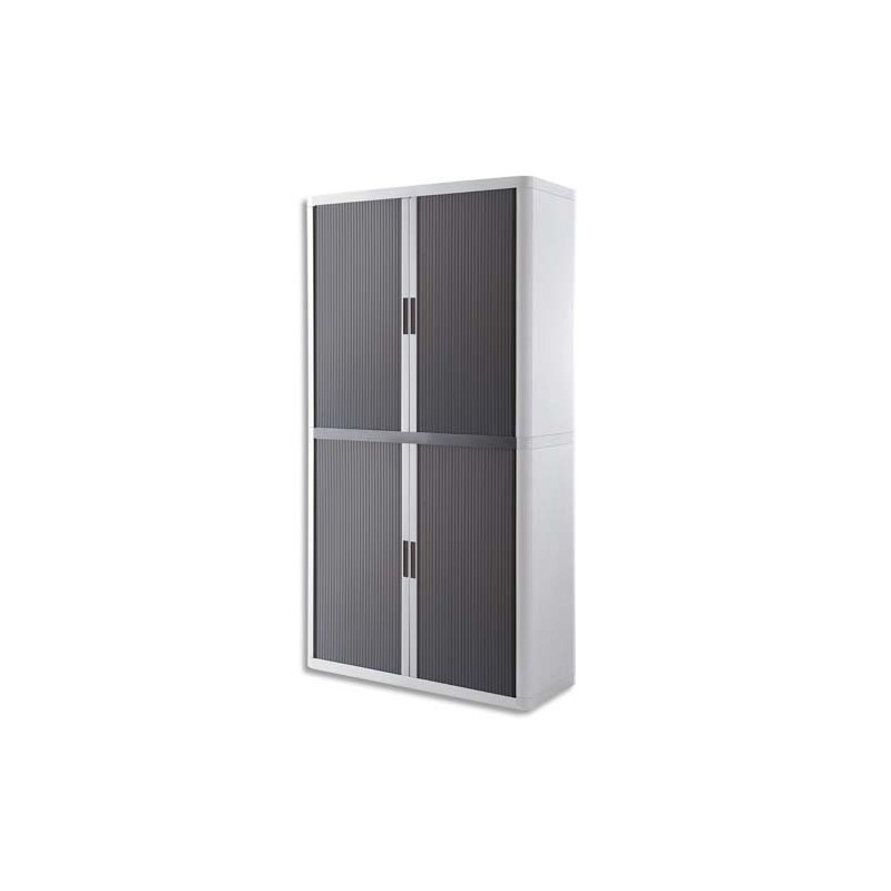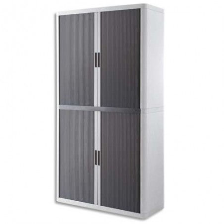Rideau polypropylène lamelles 15 mm s'escamotant totalement dans les parois pour un accès et une visibilité totale du contenu de l'armoire. Poignées encastrées avec cache escamotable. Serrure à double sortie livrée avec un jeu de 2 clés numérotées.
