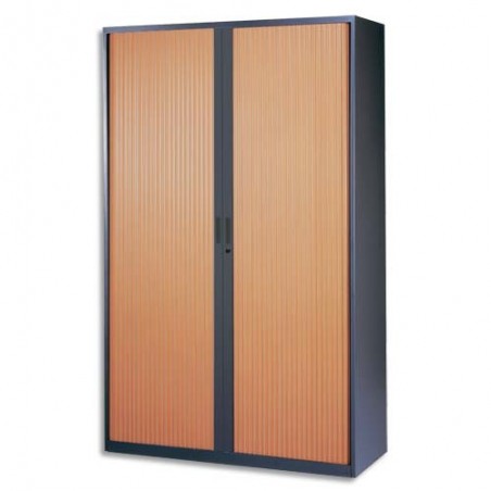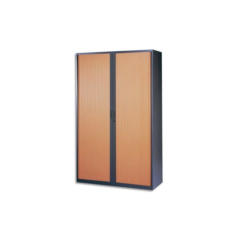 MT INTERNATIONAL Armoire haute métal monobloc Corps anthra./Rideaux merisier 4 tablet. Dim. 120x198x43cm