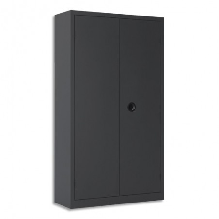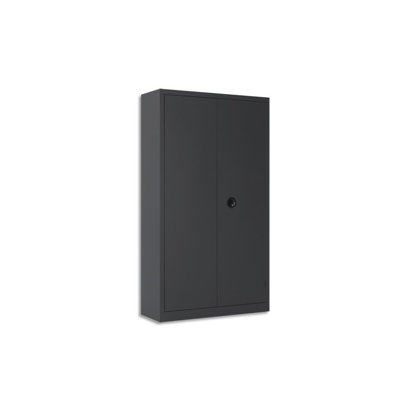 Corps et socle soudés pour une rigidité optimale. Socle à fond plat pour une sortie aisée des classeurs. 4 tablettes avec accrochage pour dossiers suspensus réglables au pas de 50 mm. Poignée en ABS (mécanisme métal) dotée d’une serrure à barillet interchangeable (fermeture 2 points). Support dossiers suspendus sous le dessus (non démontable). Profondeur 43 cm. Conforme aux normes européennenes NF EN 14073-2 et 3 et NF EN14074 et norme NF D62-041.