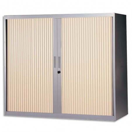 Corps monobloc soudé en tôle épaisseur 07 mm laminée à froid. Perforations à l'intérieur de l'armoire tous les 20 mm pour réglage des tablettes. Rail dans le top de l'armoire pour recevoir des classements suspendus. Rideaux en PVC (classé anti-feu M1 et teinté dans la masse). Fermeture centrale à l'aide d'une serrure avec 2 clés pliables. Poignées en ABS dans la teinte de l'armoire. Les tablettes ont une force portative de 60 kg au minimum par mètre courant. Coloris de tablette identique à celui de l'armoire. Les armoires hautes sont équipées de 4 tablettes + un jeu de rail pour 5ème rangée de DS. Les armoires basses sont équipées de 2 tablettes + un jeu de rail pour 5ème rangée de DS.