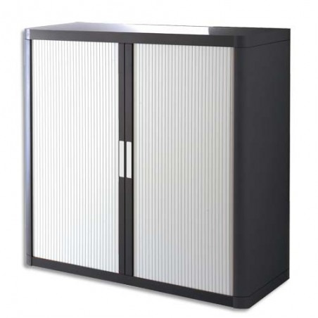 Rideau polypropylène lamelles 15 mm s'escamotant totalement dans les parois pour un accès et une visibilité totale du contenu de l'armoire. Poignées encastrées avec cache escamotable. Serrure à double sortie livrée avec un jeu de 2 clés numérotées.