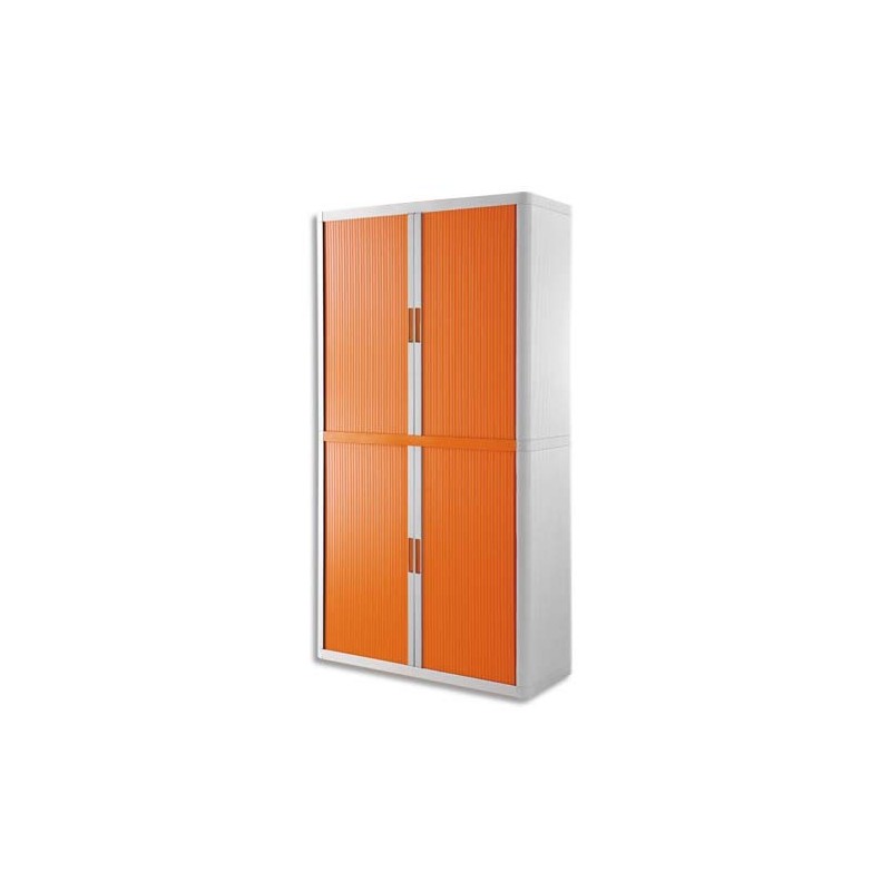 Rideau polypropylène lamelles 15 mm s'escamotant totalement dans les parois pour un accès et une visibilité totale du contenu de l'armoire. Poignées encastrées avec cache escamotable. Serrure à double sortie livrée avec un jeu de 2 clés numérotées.