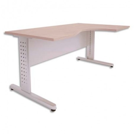 MT INTERNATIONAL Bureau compact retour droit + VDF Chêne clair Pieds métal L Impact L160 xH75 xP100-60 cm