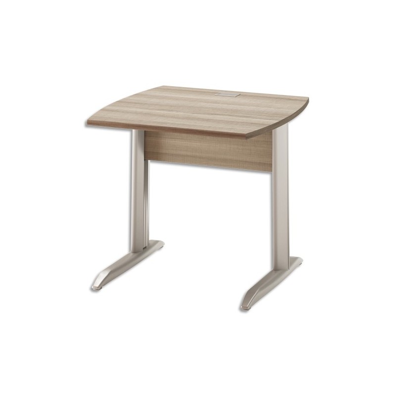 GAUTIER OFFICE Table bureau pied métal avec voile de fond Jazz Chêne Gris foncé - Dim. L80 x H74 x P80 cm