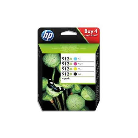 HP Pack 4 cartouches Jet dencre haute capacité 912XL Cyan-Magenta-Jaune-Noir 3YP34AE