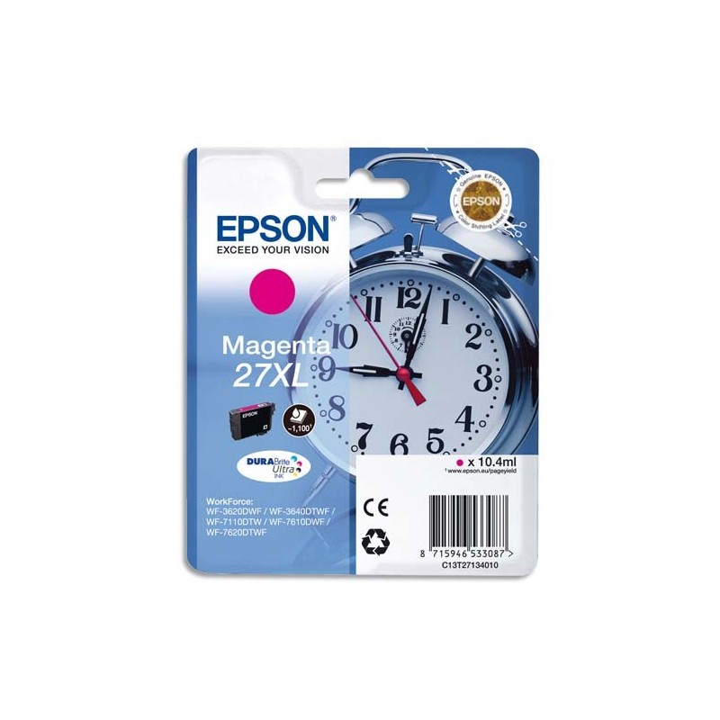 EPSON Cartouche Jet d'Encre DURABrite Ultra Magenta XL ''Réveil'' 27 (T2713) - C13T27134012