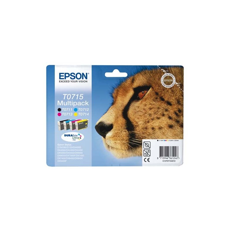 EPSON Multipack Cartouches Jet d'Encre ''Guépard'' (T0715) - Noir, Cyan, Magenta, Jaune