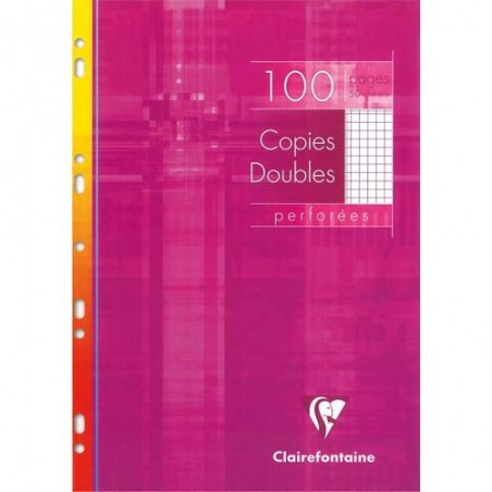 CLAIREFONTAINE Copies doubles perforées Blanche 21x29,7cm 100 pages petits carreaux 5x5 90g étui carton.