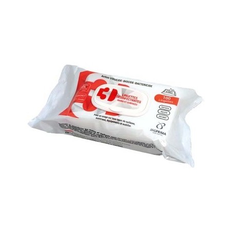 Imprégnées d’une solution pour la désinfection efficace et rapide des surfaces, matériaux, mobiliers et des mains (peau non lésée).