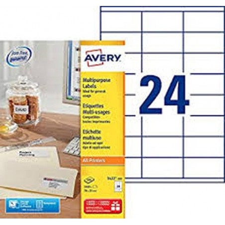 Type : Etiquettes multi-usage boîte de 100 feuillesCouleur : BlancImpression : Laser, jet d'encre, copieurFormat : 70 x 35 mmEtiquettes /feuille : 24Etiquettes/boîte : 2 400