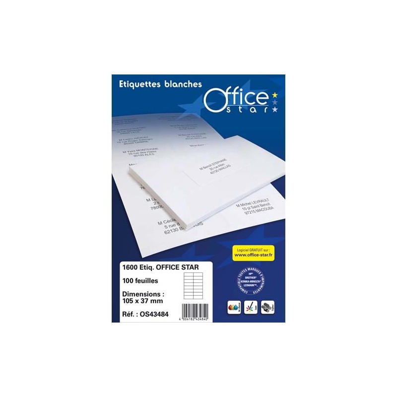 OFFICE STAR Boîte de 400 étiquettes multi-usage Blanches 105X148,5mm OS43483