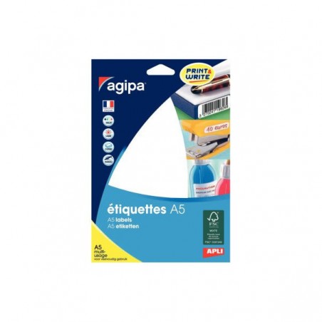 Etui de 1152 étiquettes multi-usages blanches 22x16mm. Etui de 16 feuilles A5 coins arrondis. Pour copieurs, imprimantes jet d'encre et laser, écriture. Adhésif permanent.