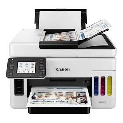 La Canon MAXIFY GX6050 est une imprimante multifonction jet d'encre couleur conçue pour les petites entreprises ou les groupes de travail ayant des besoins d'impression élevés tout en maîtrisant les coûts. Elle combine impression, numérisation et copie dans un format compact, tout en offrant une grande capacité de production grâce à sa technologie de réservoirs d'encre rechargeables.