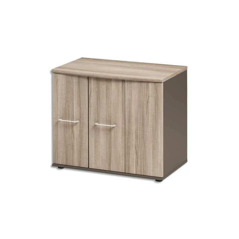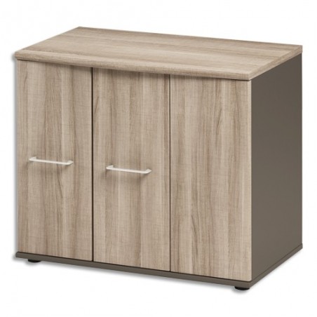 GAUTIER OFFICE Rangement bas 3 portes dont 1 coulissante + 1 étagère Jazz Chêne Gris foncé L80xH71xP48 cm