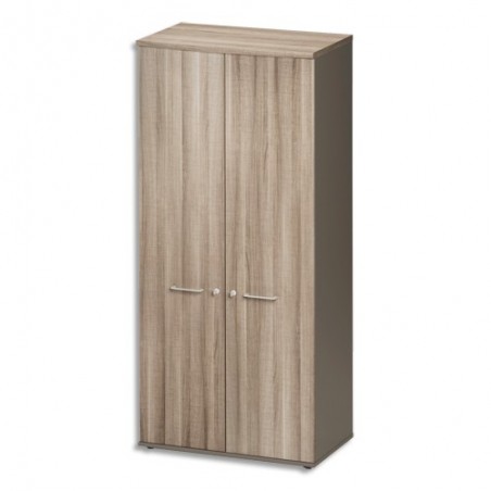 GAUTIER OFFICE Armoire 2 portes pleines Jazz Chêne Gris foncé - Dimensions : L80 x H183 x P48 cm