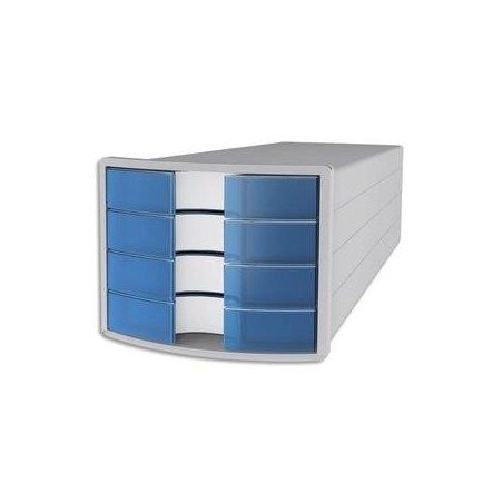 HAN Module de classement Impuls 4 tiroirs en polystyrène Gris/bl translucide. Dim. L28 x H23,5 x P36,7 cm