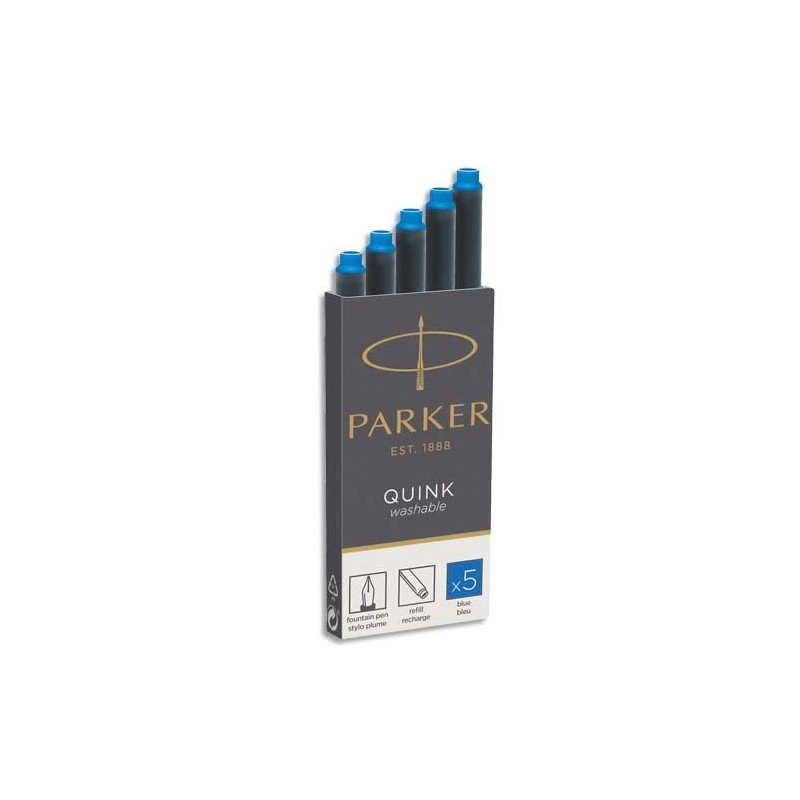 PARKER Etui de 5 cartouches longues QUINK encre Noire. En blister.