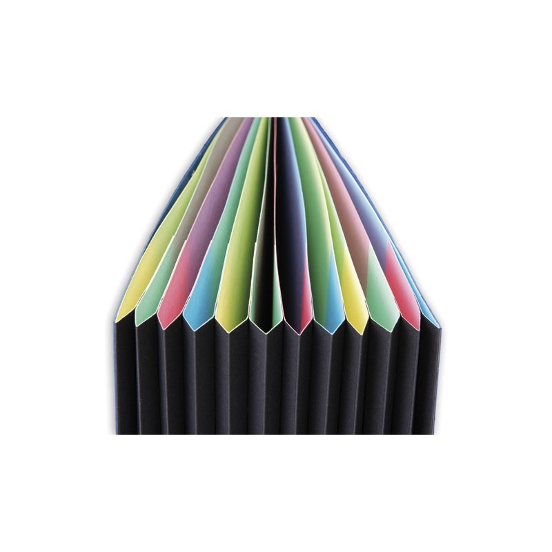 En carte forte. Intérieur carte 220 g à onglets multicolores. Fenêtres découpées. Rubriques de personnalisation interchangeables. Dos extensible renforcé. Fermeture par élastique.