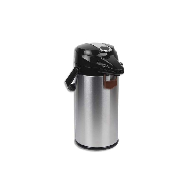 Pichet isotherme à pompe. Acier inox intérieur verre. Poignée de transport. Idéal pour le service du café et du thé. Contenance 19 litres.