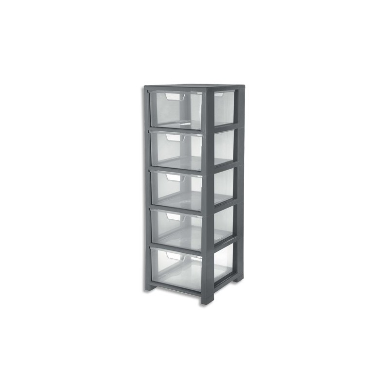 CEP Tour de rangement Gris transparent, 5 tiroirs - Dimensions - L32,5 x H95,6 x P35 cm